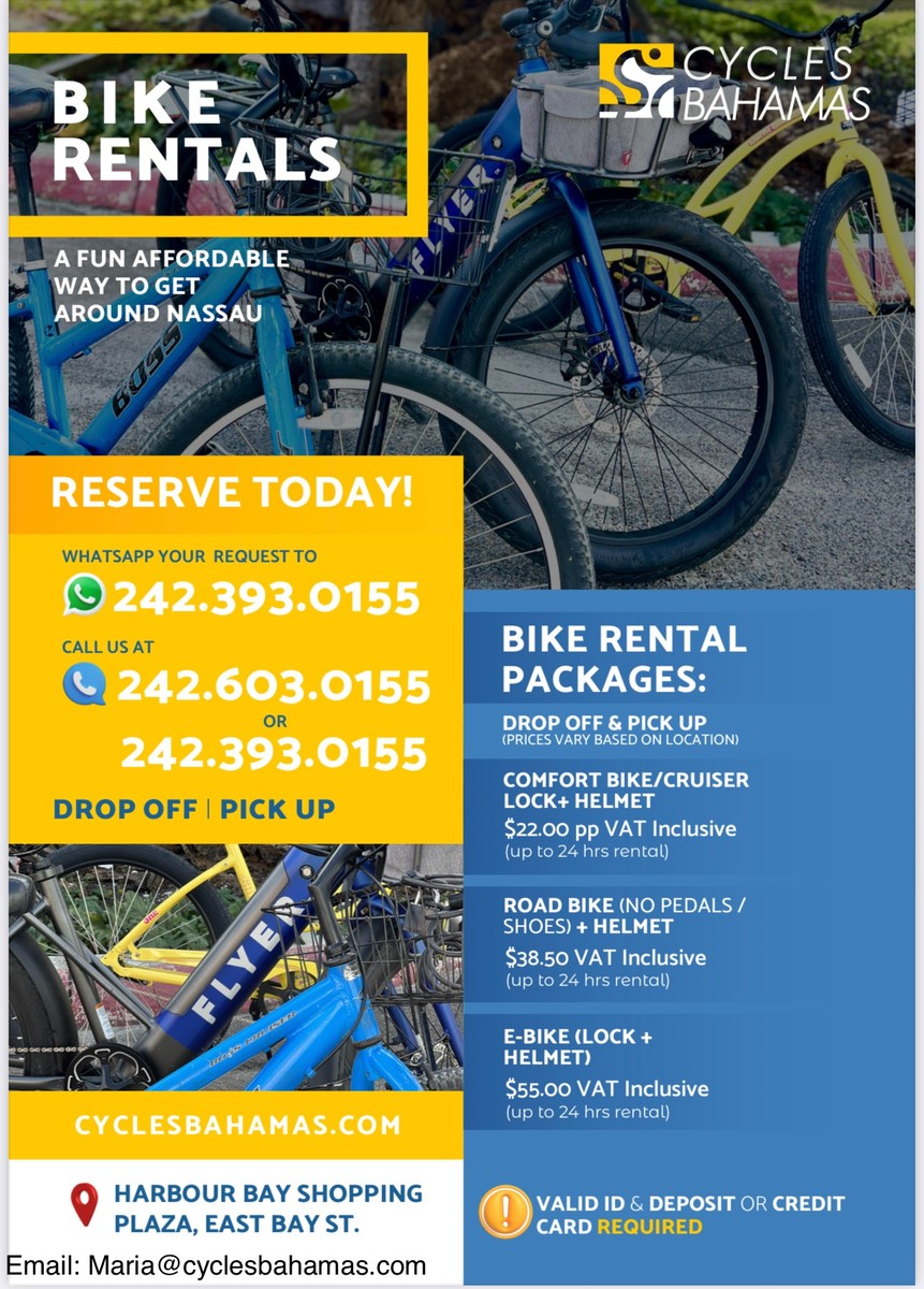 Email charlotte@cyclesbahamas.com to book.